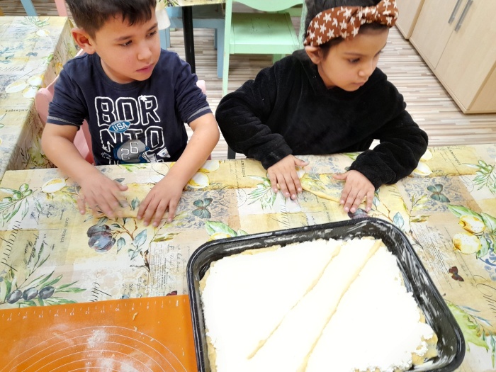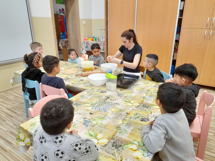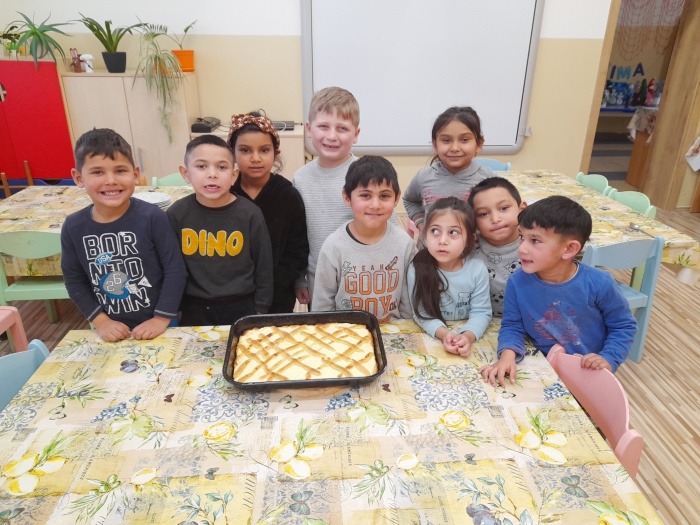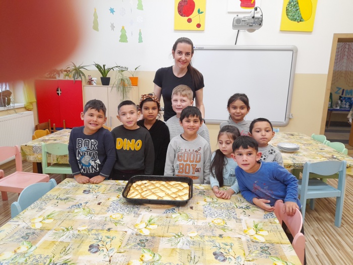 S deťmi sme si spoločne upiekli tvarohový koláč, ktorý rozvoniaval po celej materskej škole. Najprv sme si spoločne pripravili cesto, cesto si deti tvarovali do dlhých „hadíkov“, ktorých poukladali na vrch koláča. Pri pečení mal každý svoju úlohu a všetci pracovali s nadšením. Keď sa koláč upiekol s chuťou sa do neho pustili – bol výborný.