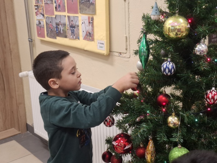 Zdobenie vianočného stromčeka patrí je tradíciou Vianoc, a keď je stromček ozdobený už naozaj zavládne pravá vianočná nálada. Aj my sme si vybrali ozdoby, medzi ktorými nechýbali ligotavé gule, farebné reťaze a žiarivé svetielka. S pomocou pani učiteliek starostlivo vešali ozdoby na vetvičky stromčeka, pričom si navzájom pomáhali a radovali sa z každej novej dekorácie. V pozadí zneli tiché vianočné koledy, ktoré dotvárali sviatočnú atmosféru. Keď bol stromček hotový, všetci sme ho so záujmom obzerali, obdivovali jeho krásu a tešili sa na blížiace sa Vianoce. V očkách našich najmenších bol náš stromček najkrajší.