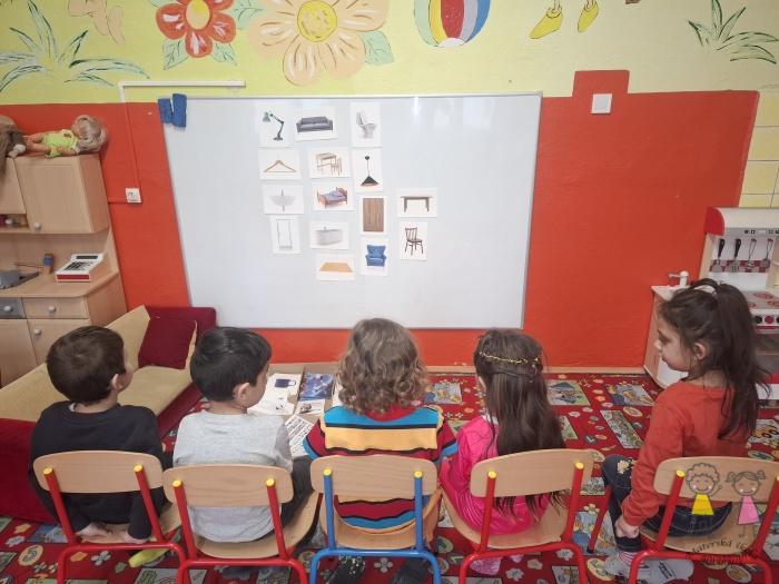 Prvou témou v mesiaci február boli Fašiangy, kde sa deti oboznámili so zvykmi a tradíciami v našom regióne. Karneval, ktorý je samozrejme ich súčasťou sme prežili veeeľmi veselo. V ďalšej téme sme sa venovali nášmu Slovensku. Prostredníctvom rôznych aktivít sa oboznámili so štátnym znakom, vlajkou, hymnou, hlavným mestom SR. V interaktívnej prezentácií sme si priblížili živočíšnu aj rastlinnú ríšu Slovenka, prostredníctvom fotografií obdivovali krásy našej krajiny. Už v predošlých témach sme sa venovali mestám aj dedinách, ale práve s touto témou týždňa majú veľký súvis. V téme Predmety okolo mňa deti spoznávali rôzne materiály a ich vlastnosti. Veľmi ich zaujali najmä hmatové pexesá. Triedili obrázky rôznych predmetov v domácnosti do kategórií a vo výtvarných činnostiach využili aj textil. V grafomotorike sme sa venovali nácviku kresby slučky s dolným oblúkom. Pri grafomotorických cvičeniach nielen kreslíme grafomotorické prvky, ale rozvíjame aj jemnú a hrubú motoriku. Pri nácviku slučky s dolným oblúkom sme si najskôr museli ozrejmiť jej tvar - lano, precvičiť si prsty – štipcový úchop, tvarovanie voskovej šnúrky do slučiek s dolným oblúkom i jej tvarovanie z plastelíny, ... Až vo fixácií sme kreslili slučky s dolným oblúkom na tabuľu, papiere i do zošitov.