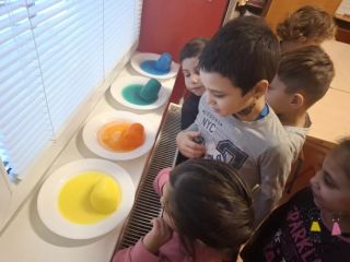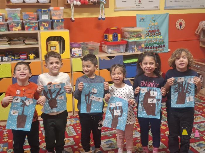 Mesiac január bol u nás venovaný obsahovému celku Kúzelná pani Zima. V jednotlivých týždenných témach sme odhaľovali kúzla a krásy zimy, charakterizovali sme život lesných a voľne žijúcich zvierat v zime, v téme ako plynie čas sme sa oboznámili s časovými vzťahmi, učili sa orientovať v časových súvislostiach jedného dňa, týždňa, mesiaca, roka. No a v posledný januárový týždeň získali deti predstavy o vesmíre, planétach a rôznych vesmírnych telesách. Zima je naozaj krásna a kúzelná, preto sme veľa maľovali – temperovýcmi farbami, tušom; kreslili farbičkami, pastelom, zmizíkom; vystrihovali, nalepovali. Okrem toho sme experimentovali s tuhnutím a topením farebného ľadu, čo deti uchvátilo a dokázali zdôvodniť tento zimný zázrak. Počítali sme vtáčikov na kartičkách – vytvárali skupiny s určeným počtom, pridávali, odoberali. Matematiku sme si precvičovali v januári veľa a nesmeli chýbať ani rovinné geometrické tvary – pomenovanie farby, tvaru, triedenie, vytváranie skupín s určeným počtom, ... Nesmela chýbať ani jedna z metód predčitateľskej gramotnosti, kde deti nalepovali písmená v slove podľa predlohy – obrázok a slovo z témy vesmír. V rámci rozvoja komunikačnej kompetencie sme každý deň v rannom kruhu čítali knihu: Kubko a rečové cvičenia; realizovali sme analyticko-syntetické činnosti so slovami, rytmické činnosti so slovami a textom. Naučili sme sa nové piesne, básne, riekanky, ... Mesiac január bol teda v II. triede sovičiek veľmi zaujímavý, pestrý a rozmanitý.