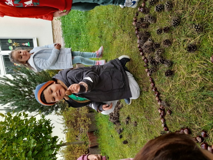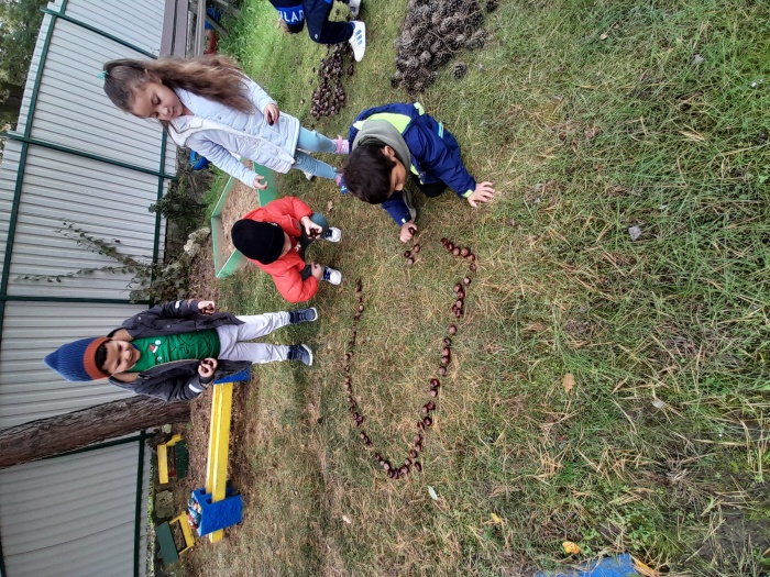 S príchodom jesene sa mení celá príroda, mení sa všetko vôkol nás. Aj v našej škôlke sme poznávali jeseň aktivitou s prírodninami. V školskej záhrade si deti vytvorili spoločný jesenný obraz z gaštanov a zo šišiek , ktoré si sami nazbierali. Deti toto kreatívne tvorenie veľmi bavilo.