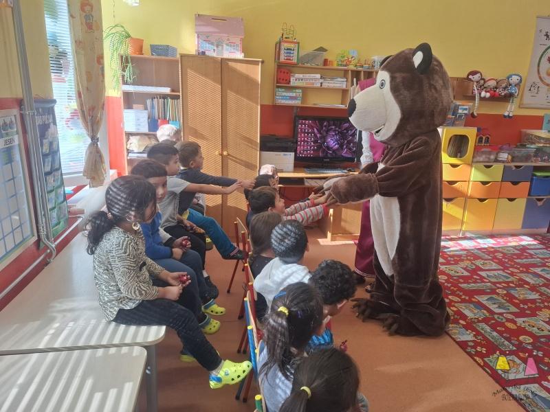 7. novembra navštívili našu materskú školu Máša a medveď, ktoré sú topkou v rebríčku rozprávok našich detí. To teda bola radosť ... O zábavu sa postarali nielen Máša s medveďom, ale aj skvelá pani animátorka. Deti tancovali, spievali, súťažili, ... Na konci boli dokonca odmenené lízatkom.