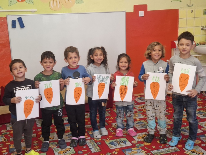 Október bol dlhý a my sme sa venovali viacerým témam zameraným na farby, ovocie a zeleninu, ročnému obdobiu – jeseň, lesným a voľne žijúcim zvieratám, spoznávali sme les a jeho rastlinnú ríšu. Pri rôznych vzdelávacích aktivitách deti pomenovávali farby, experimentovali s farbami. Spoznávali kategórie ovocia a zeleniny, podľa vzhľadu, chuti a vône niektoré triedili druhy ovocia a zeleniny, triedili ich podľa druhu aj miesta ich výskytu. Deti na základe pozorovania poznávali jeseň, jej typické znaky, zmeny v prírode. Spoznávali a pomenovali niektoré voľne žijúce a lesné zvieratá na našom území a ich mláďatá. Charakterizovali ich typické znaky, životné prejavy a rôznorodosť spôsobu ich života. Spoznávali aj les a jeho rastlinnú rozmanitosť – stromy, kríky, huby. V priebehu celého mesiaca deti veľa maľovali, kreslili, strihali, lepili ... V grafomotorike sme sa venovali nácviku kresby grafomotorického prvku kruh, ktorý deti kreslili navíjaním aj mletím.