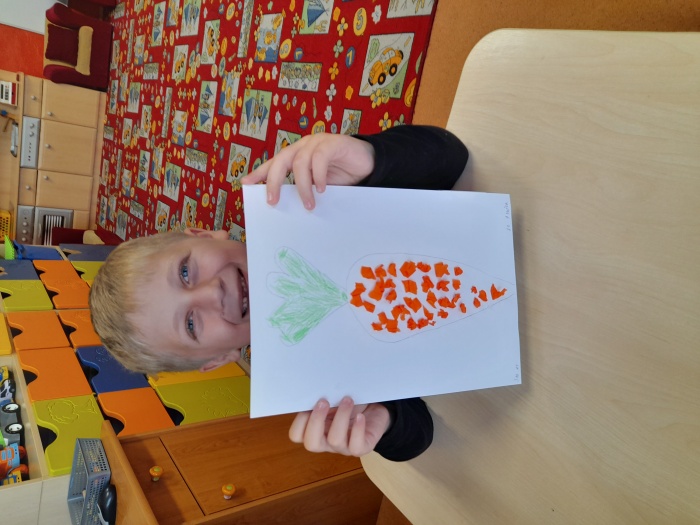 V mesiaci október sa deti aj naďalej prispôsobovali novým pravidlám a zvykali si na režim v materskej škole. Rozprávali sme sa o jeseni, využívali sme pekné jesenné počasie na pobyt vonku, kde sa deti vyšantili a nadýchali čerstvého vzduchu. V októbri sme sa venovali aj téme Ovocia a zeleniny ,spoznávali rôzne druhy, určovali farby a tvary, triedili, riešili interaktívne úlohy. Ďalej sa oboznámili s lesnými a voľne žijúcimi zvieratkami. Určovali rozdiely povrchu tela a rozdiely medzi spôsobom života s domácimi zvieratami. V ďalšej téme sme sa venovali Lesu - učili sa rozoznať rozdiely medzi stromom a kríkom, ako rozdeľujeme stromy- ihličnaté a listnaté. Na základe prezentácie obrázkov pomenovávali jednotlivé stromy a prečo sú dôležité pre ľudí a život na zemi.