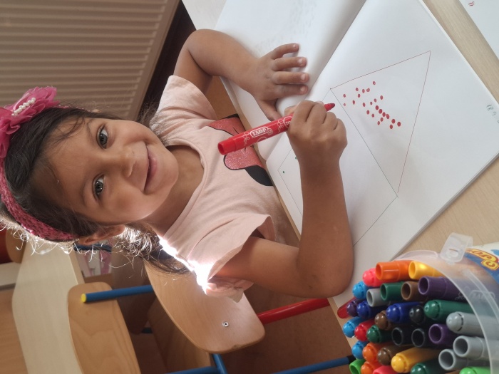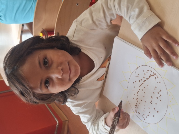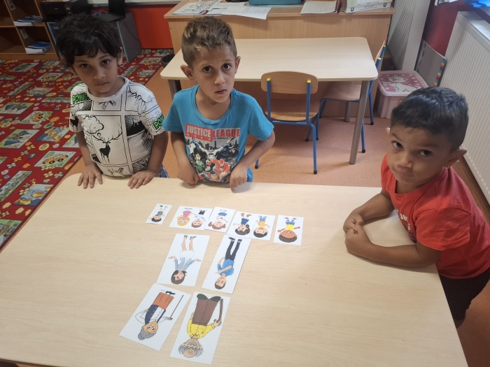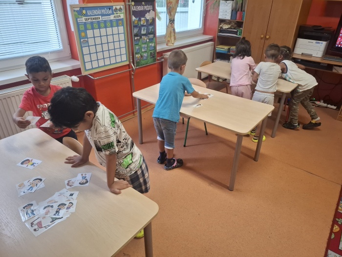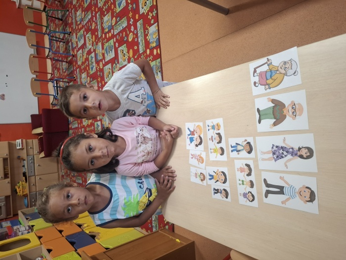 V septembri sme sa venovali témam zameraným na rodinu, kamarátov, mesto i dedinu a profesiám, ktoré dospelý vykonávajú. Pri grafomotorických činnostiach sme sa venovali zaznamenávaniu bodu – voľne aj na určenej ploche, kresbou aj maľbou. Pomenovali sme členov rodiny, hrali námetové hry a v skupinách vytvárali rodiny s rôznym počtom ich členov. Kreslili sme mamky, ockov, kamarátov. V mestách aj na dedinách sú domy, tak my sme sa dom naučili naučili sa kresliť, dotvárali dom kresbou a dolepovaním častí. Oboznámili sme sa so základnými profesiami a deťom sa veľmi páčila hra na remeselníkov i dramatické stvárnenie rôznych pracovných činností. Mesiac september bol ... zaujímavý – trošku uplakaný, ale aj veselý, plný novôt pre nás učiteľky, ale aj deti. Zaskočila nás aj vysoká chorobnosť. Spoznali sme sa však navzájom, naučili rešpektovať sa aj so svojimi odlišnosťami a individualitami. Veď každý z nás je iný, či dospelý, či dieťa. A len pri vzájomnej spolupráci, rešpekte a úcte niečo spoločne dokážeme.