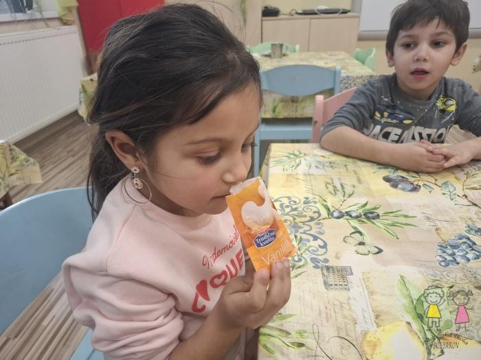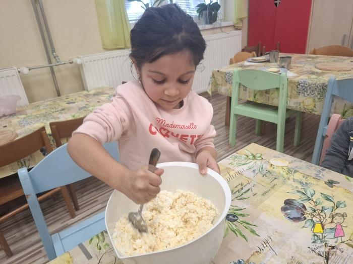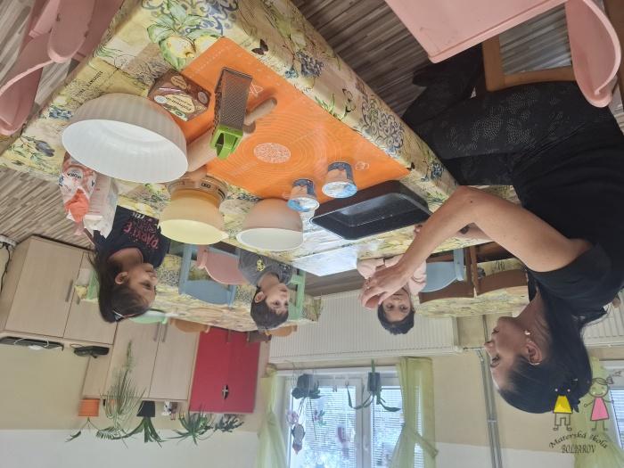 V mesiaci február zamerali sa pri plánovaní aktivít zamerali aj na oblasť zdravej výživy. Cieľom aktivity bolo poznať význam mliečnych výrobkov - tvarohu pre zdravie a uvedomiť si význam ich pravidelnej konzumácie v rôznych formách pre zdravie človeka. Preto sme piekli tvarohový koláč. Oboznámili sme sa so všetkými ingredienciami, pomôckami k príprave a postupom. Potom sme pracovný postup prakticky uplatnili v jednotlivých krokoch prípravy. Koláčik sme nakoniec upiekli a na olovrante si na ňom pochutnali. Na táckach deti vzali tvarohový koláčik ochutnať aj svojim rodičom.